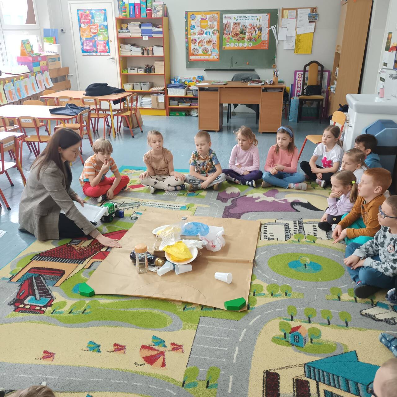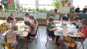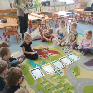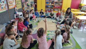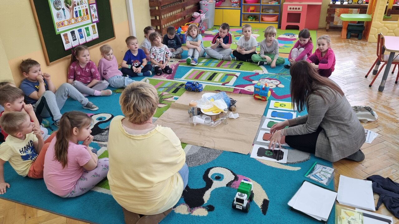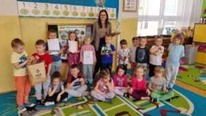 Zajęcia odbyły się w ramach Edukacyjnej Akcji Ekologicznej. Dzieci z grup Niebieskiej, Różowej i Czerwonej poprzez aktywny udział oraz zabawę, rozwijały swoją wiedzę i zdobywały nowe umiejętności. Omówiły zasady segregacji odpadów, dowiedziały się, na czym polega recykling. Uczyły się, że troska o planetę zaczyna się od małych kroków – takich jak codzienna segregacja śmieci w domu czy w przedszkolu. Spotkanie było również doskonałą okazją do integracji przedszkolaków i nauczycieli wokół wspólnego celu – troski o środowisko naturalne. Bardzo dziękujemy za odwiedziny i pouczające zajęcia.