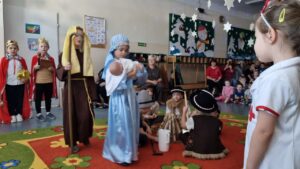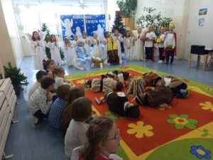 W naszym Przedszkolu tradycją jest przygotowanie przez dzieci Jasełek oraz uroczyste świętowanie Dni Babci i Dziadka.