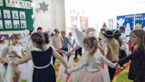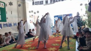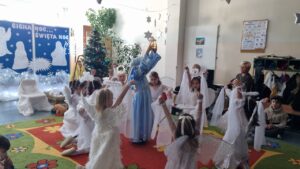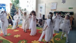 W tym roku grupy Niebieska i Czerwona wystąpiły w przedstawieniu jasełkowym dla swoich szczególnych gości. Dzieci złożyły pokłon Jezusowi oraz serdeczne życzenia swoim kochanych Babciom i Dziadkom. Było wspólne kolędowanie, pięknie wykonane upominki, które przypomną o tym, tak szczególnym dniu, a na koniec słodki poczęstunek przygotowany przez rodziców.