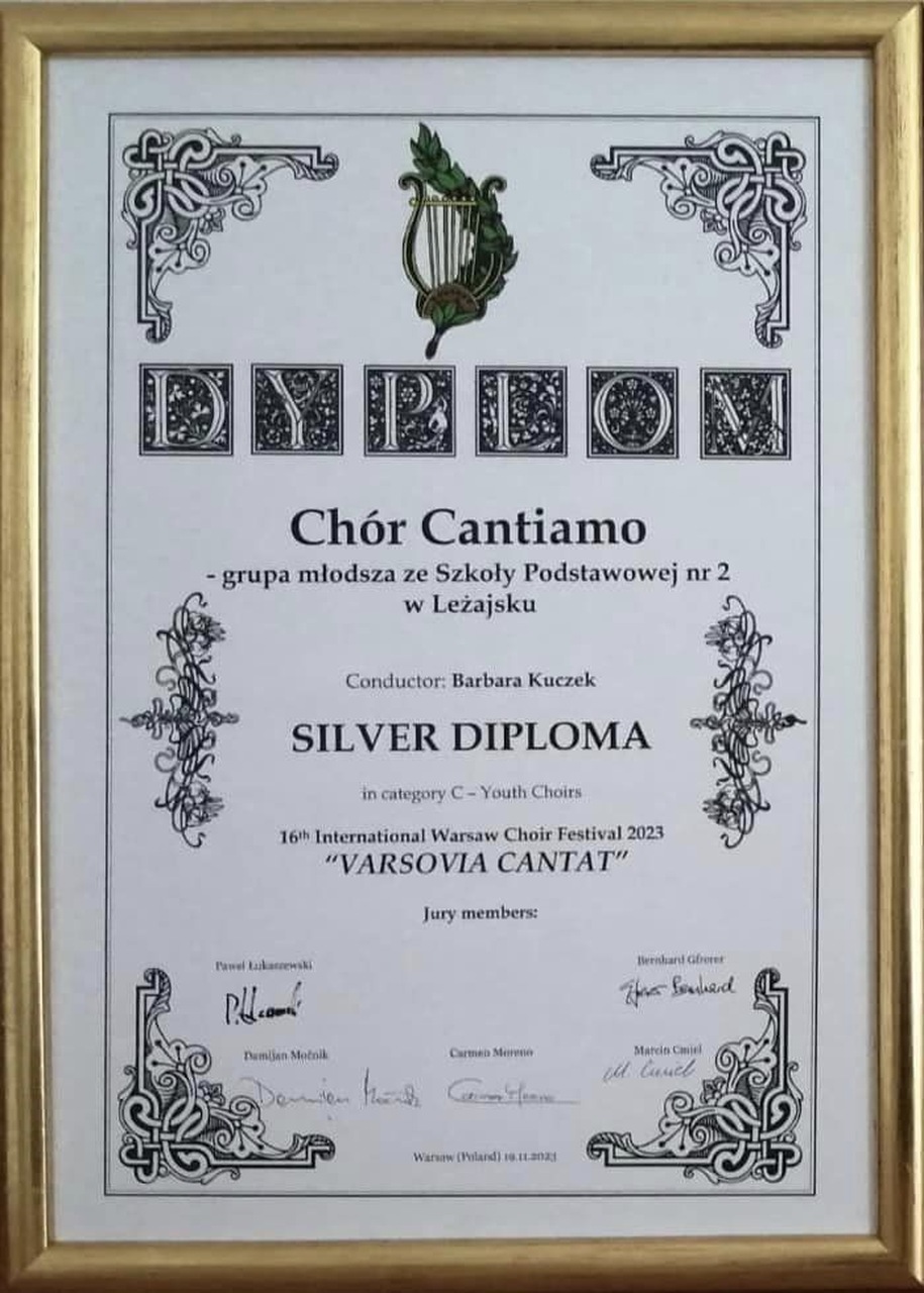 Chór Cantiamo – grupa młodsza ze Szkoły Podstawowej nr 2 pod batutą Barbary Kuczek zdobyły Srebrny Dyplom. Podkreślić należy, że Złotego Dyplomu w tej kategorii nie przyznano.