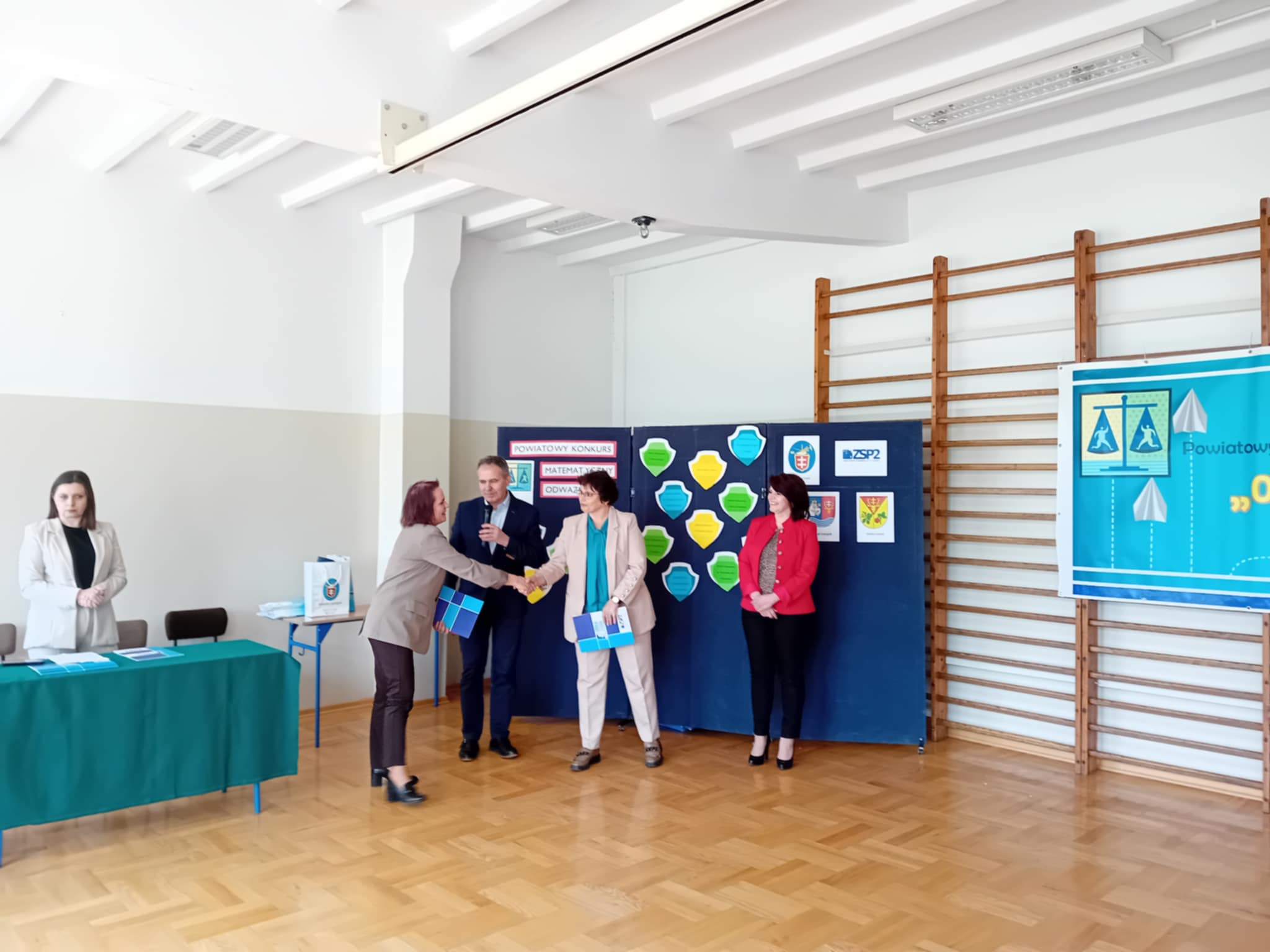 W bieżącym roku szkolnym 2024/25 odbyła się kolejna, już czwarta, edycja Powiatowego Konkursu Matematycznego „Odważnik 2025”, organizowanego przez zespół nauczycieli matematyki naszej szkoły, czyli panią wicedyrektor – Jadwigę Franus, panią Agatę Srokę, panią Gabrielę Ćwiek oraz panią Bernadettę Miazga – Stawarz. „Matematyka jest drzwiami i kluczem do nauki” to hasło przewodnie tegorocznej edycji, której koordynatorem była pani Agata Sroka.