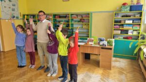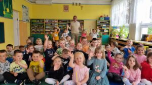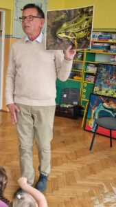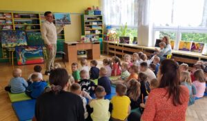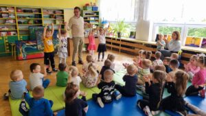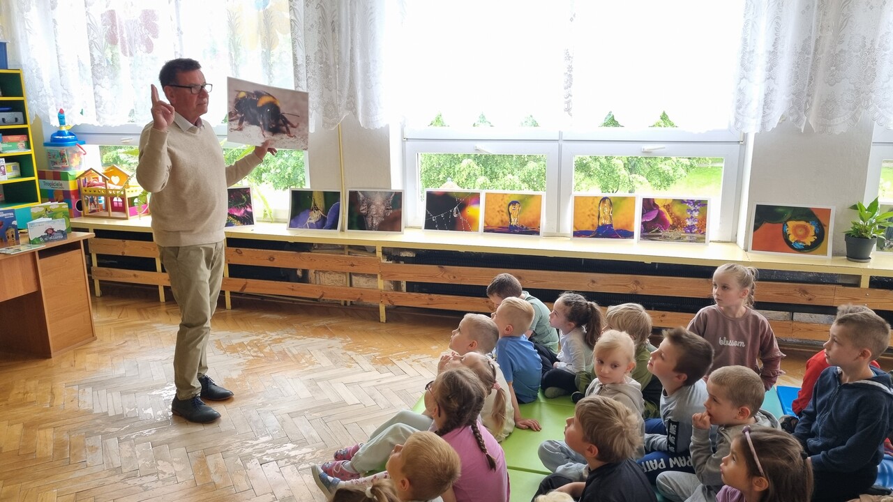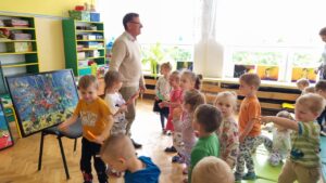 Pan Wojciech opowiadał o swoich pasjach, miłości do książek i poznawania otaczającego nas świata. Pisarz zaprezentował dzieciom swoje bajki i tworzył z nimi zabawne inscenizacje. Maluchy mogły obejrzeć kilka obrazów autorstwa pana Ulmana oraz przepiękne fotografie przedstawiające przyrodę. Na koniec spotkania każdy przedszkolak otrzymał książeczkę z dedykacją autora, która będzie wspaniałą pamiątką.