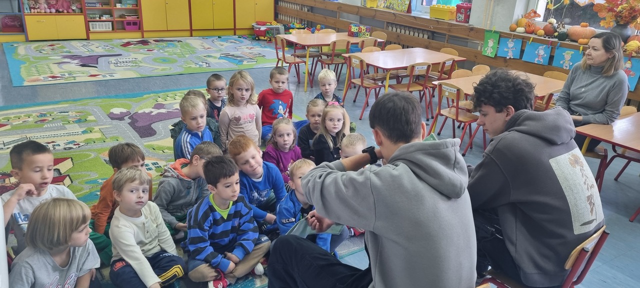 06.11.2024r w naszym przedszkolu mieliśmy wspaniałych gości. Już po raz kolejny odwiedzili nas uczniowie Zespołu Szkół Technicznych w Leżajsku.